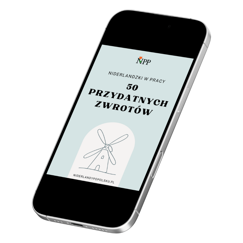 Ucz się niderlandzkiego regularnie, ale w swoim tempie i na własnych zasadach! Odbierz e-booka za 0 zł „Niderlandzki w pracy. 50 przydatnych zwrotów” w wersji na telefon oraz do druku, z miejscem na notatki oraz cotygodniowe mini-lekcje!