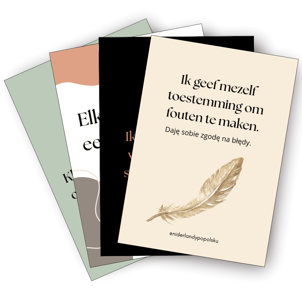 – 20 kart PDF z motywującymi zdaniami po polsku i po niderlandzku